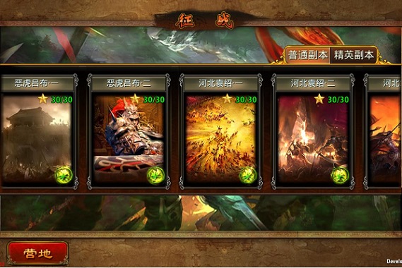 “战役”进入口在营地最前方的城门,点击城门可进入“战役”界面;