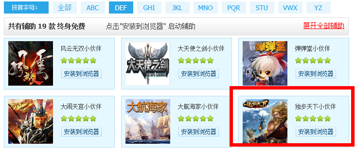 3、找到独步天下游戏辅助,点击安装到浏览器