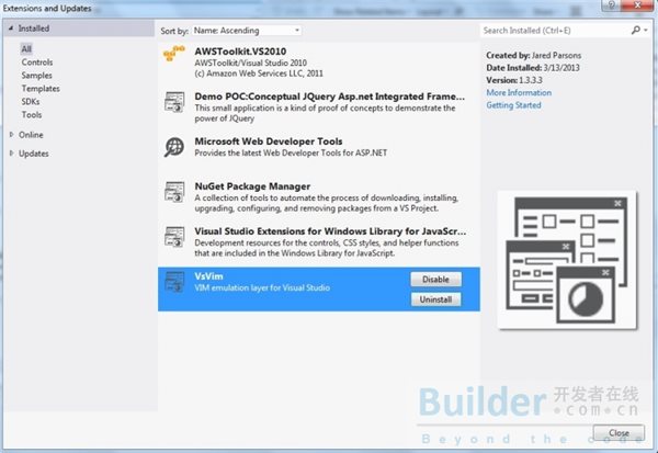 图 A 显示了在我的开发用计算机上的针对Visual Studio 2012旗舰版的已装入的扩展。注意如果您想要关闭扩展时其提供了禁用按钮— 同时可以通过Ctrl+Shift+F12键在Visual Studio中实现禁用/启用。