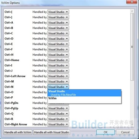VsVim键盘绑定通过VsVim选项窗口可以配置。