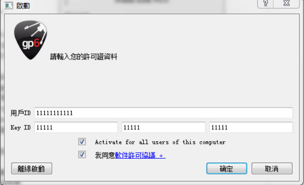 安装之后,会弹出许可证资料输入窗口,窗口左下角有“离线启动”按钮,但它是灰色不可选状态。在输入框中任意输入数字,只到该按钮可用为止