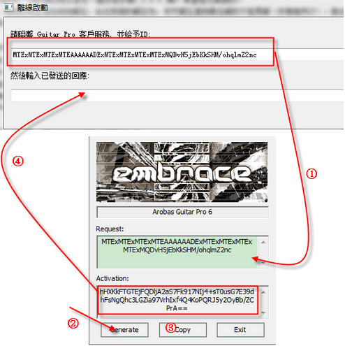 将申请码复制粘贴到注册机的“Request”下的输入框中