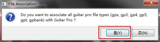3、然后执行Guitar Pro 6. 打开程序时会询问是不是关联所有Gtp文件,点击是