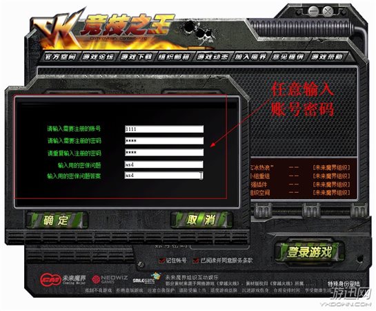 2、任意填写注册账号(只能填数字)及密码等信息后点击确定