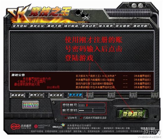 3、到登陆界面对应输入刚才填写的账号和密码后点击登陆游戏