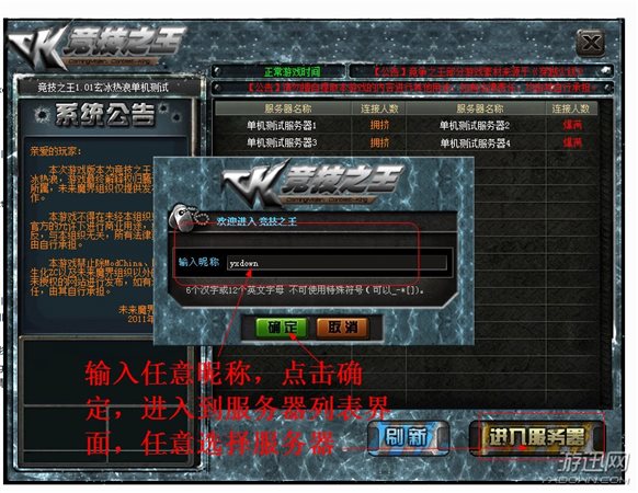 5、输入任意昵称,进入到服务器列表界面,任意选择服务器