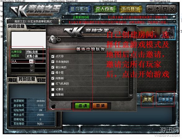 6、自己创建房间,选择任意游戏模式及地图后点击邀请,邀请完所有玩家后,点击开始游戏