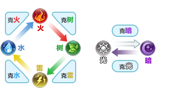 【火】【树】【雷】【水】【光】【暗】六大属性相生相克,