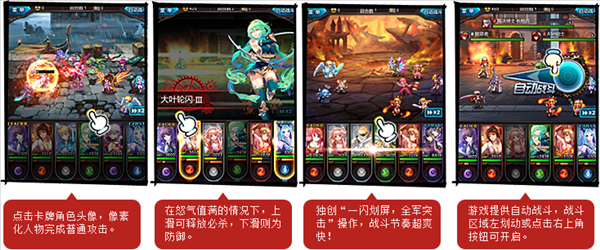 全手势爽快操作,滑屏释放超必杀技,防御、合击、队长技超高端策略组合,卡牌玩得不只是对撞!