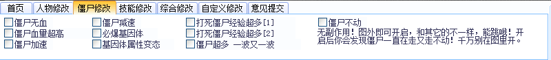 2、僵尸修改:僵尸无血、僵尸加速、必爆基因体、僵尸血量超高