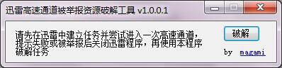 迅雷高速通道被举报资源破解工具让你免费享受迅雷高速通道的加速效果,让你瞎电影,下游戏,下资源不再等待,飞快的速度在等待你,破解工具你值得拥有。