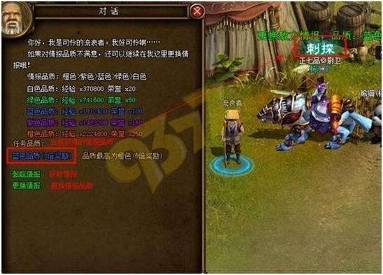 每日活动之国家刺探:活动需要到本国皇城(126,118)NPC兵马大元帅领取,与太庙搬砖一样,每日12:30-14:00是双倍奖励时间。因为12:30的时候会有系统提示,因此这个时间段做任务的人会非常多,此任务也是难免会与其他国家的玩家PK,因此建议是先做完太庙搬砖在做国家刺探,当然如果喜欢PK的朋友可以选择这个时间段进行活动。