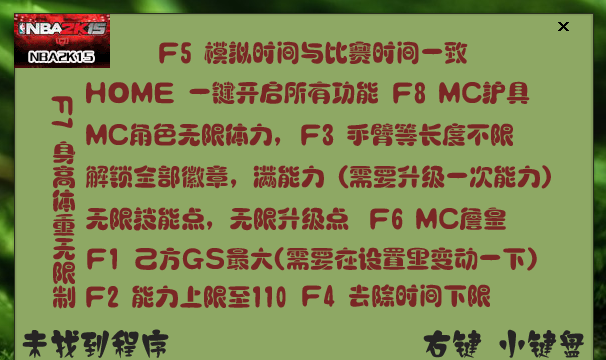 F5模拟时间与比赛时间一致HOME 一键开启所有功能 F8 MC护具