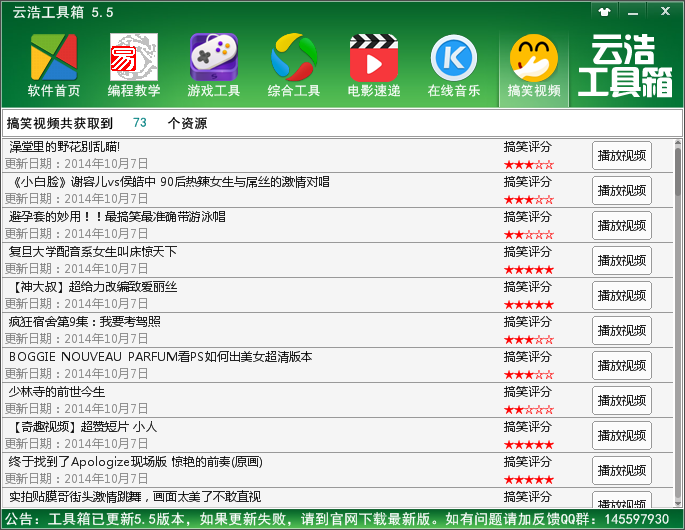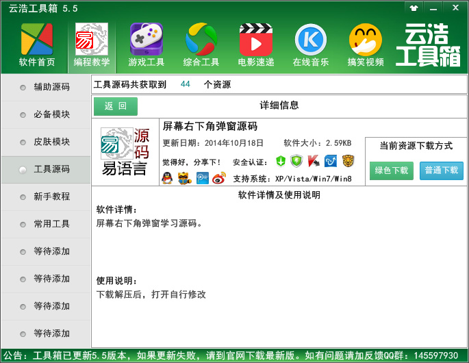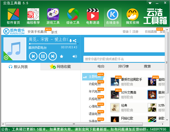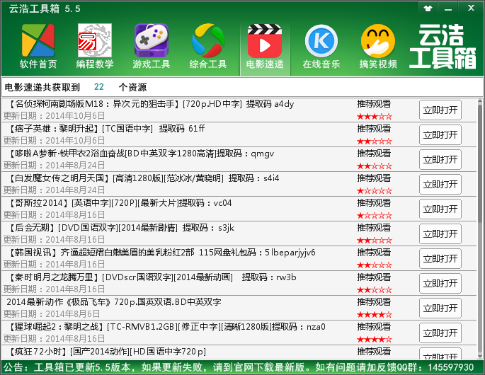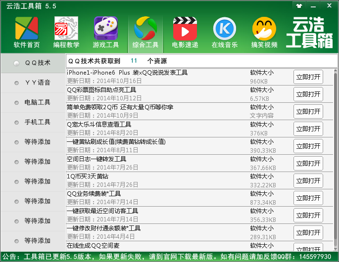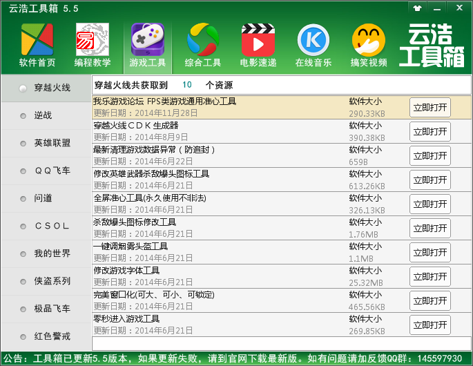 云浩工具箱是一款综合的网络工具箱。在这工具箱里面,你可以找到很多实用的工具,如编程教学、CF辅助工具、热门游戏工具、电脑技术、电影搞笑视频分享等。