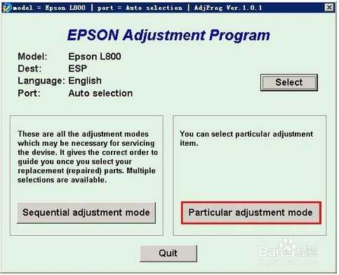 这时候进入到另一个对话框,我们点击particular adjustment mode按钮,进入打印机维护;