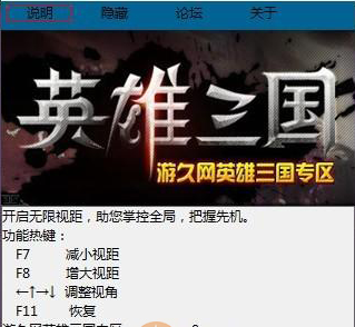 3.点击说明,你可以看到功能热键的说明。保持开启状态,然后进入英雄三国游戏就可以了。
