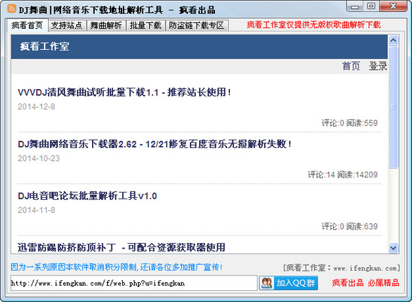 DJ网络音乐下载地址解析工具是一款非常好用的DJ舞曲网络音乐下载地址解析工具。它可支持40多个DJ舞曲网站,后续会不断添加更多新的舞曲站点。有了它,再也不用担心DJ网站下载音乐需要资源比了。