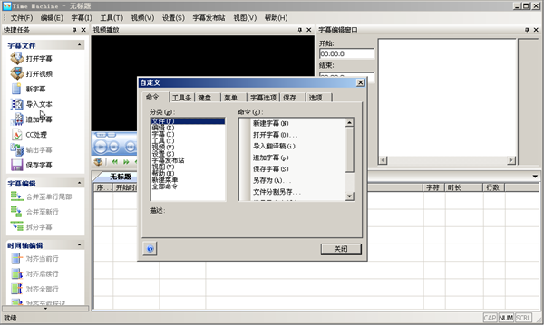 时间机器字幕制作软件支持SRT,ASS,格式字幕;支持TXT文档导入进行制作时间轴,允许以空格作为时间轴拆分点标记,也允许把每行做为一个时间轴;支持输出多版本字幕(SRT,ASS,简体繁体,以及中英);支持打包为一个RAR文件,输出的时候可设置ASS参数,允许平均分割为多段字幕输出;支持AVI,RMVB,MKV,MPG,MPEG,等多种常用格式视频(前提是系统装有这种视频的解码器,如果没有请自己安装)。