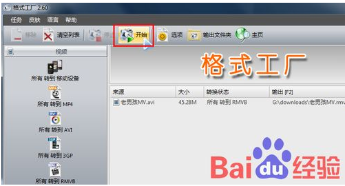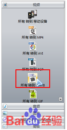 9、回到主界面,我们这里把这个本来是AVI格式的视频转化成RMVB格式,选择“所有 转到 RMVB”