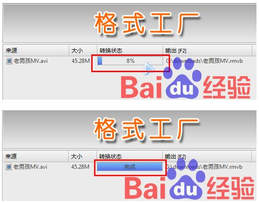 11、点击主界面上的“开始”开始转换。转换的时候有进度百分比的提示。完成以后会显示“完成”。