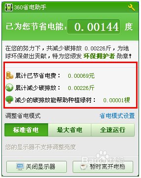 5、360省电助手可以快速的关闭显示器,很实用。