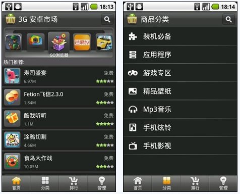 3G安卓市场的资源十分丰富,分类清晰明了,而且这些分类内容更加符合中国用户的使用习惯,让用户使用到属于自己的电子市场。
