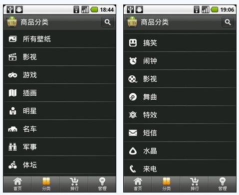 除了应用和游戏外,3G安卓市场还为大家准备了壁纸及铃声资源,也都做了详细的分类,根据所需进行选择。详细的分类让软件使用尤为简便,资源更加有条理。