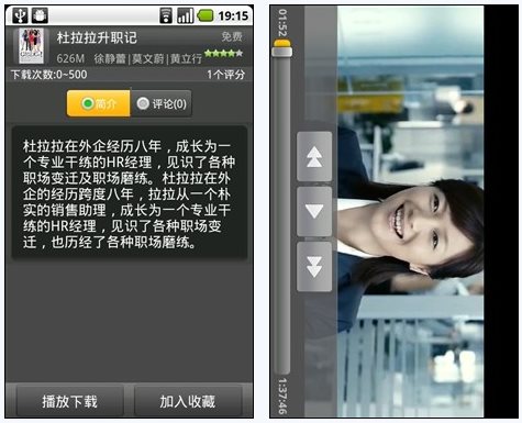 Android手机的触摸大屏幕绝对是影片欣赏的首选,不用来观赏影视大片真是一种浪费。3G安卓市场也考虑到了这个问题,这不,手机影视栏目为大家准备了不少经典影片,以及最近非常火热的新片速递,除了可以下载以外,还支持在线观看,让人吃惊的是,在线观看的影片清晰度极高,影片赏析效果一流!