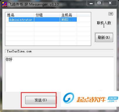 2、选择用户,输入信息,点击发送,则在局域网中的用户就会收到信息