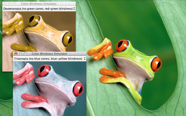 请注意,我不想有完美或近乎完美的色盲模拟滤波器。这取决于正确的屏幕校准和其他因素我无法控制。此应用程序是在试图让自己和其他确保网站和其他设计免费提供的色盲的人使用。