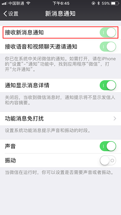 iOS用户还需要检查微信》设置》新消息通知,确认“接收新消息通知”开关已经打开。