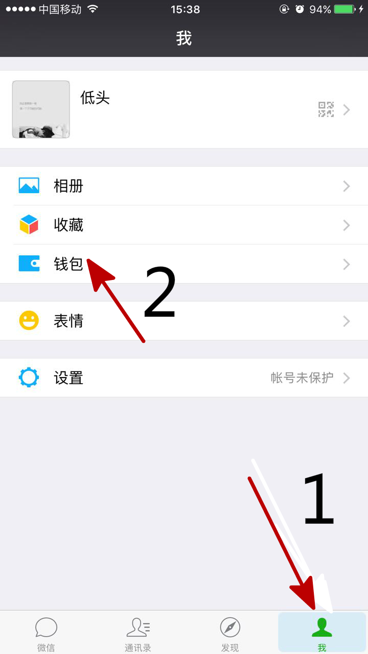 第一步:登录微信,点击最下面“我”的选项,找到“钱包”选项。
