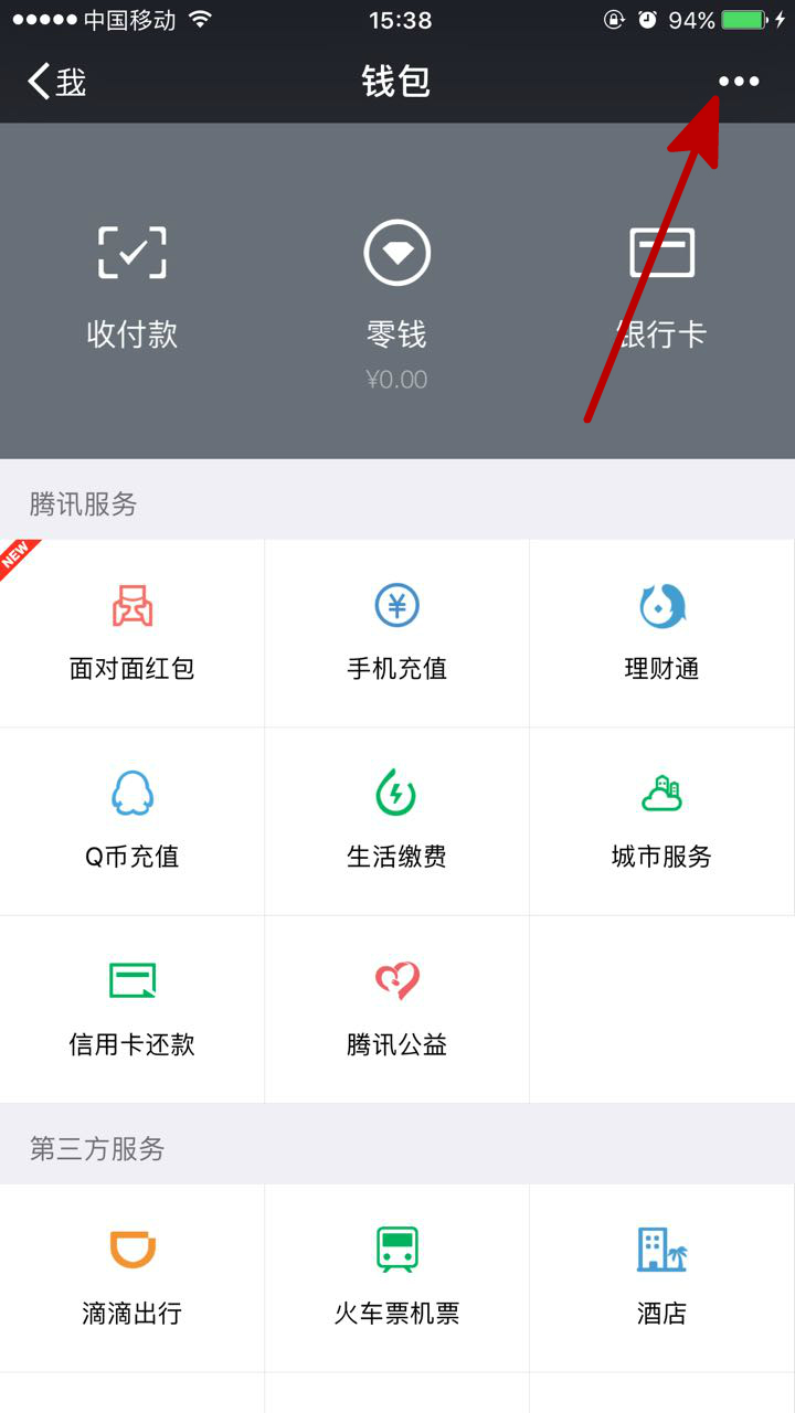 第二步:点击“钱包”选项进去。点击找到右上角3个横着的点。