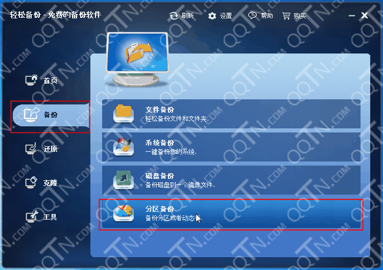 第一步:下载免费的轻松备份,安装并运行它。 然后,在“备份”功能目录下选择“分区备份”。
