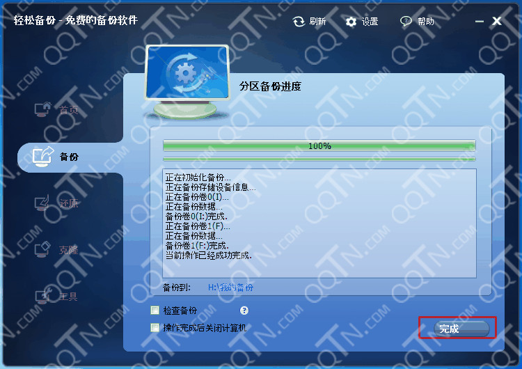 第三步:当完成所有的设定时,点击“开始备份”。最后点击“完成”。
