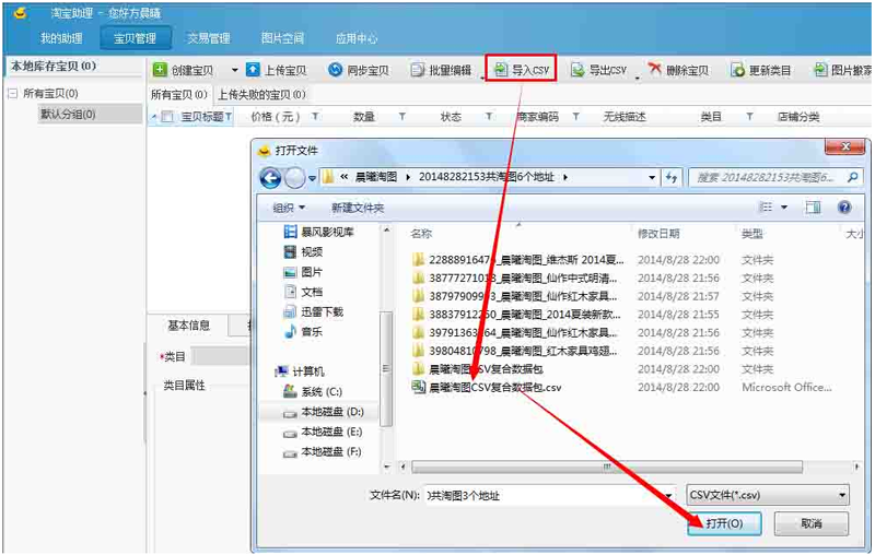 接下来我们把数据包导入“淘宝助理”中