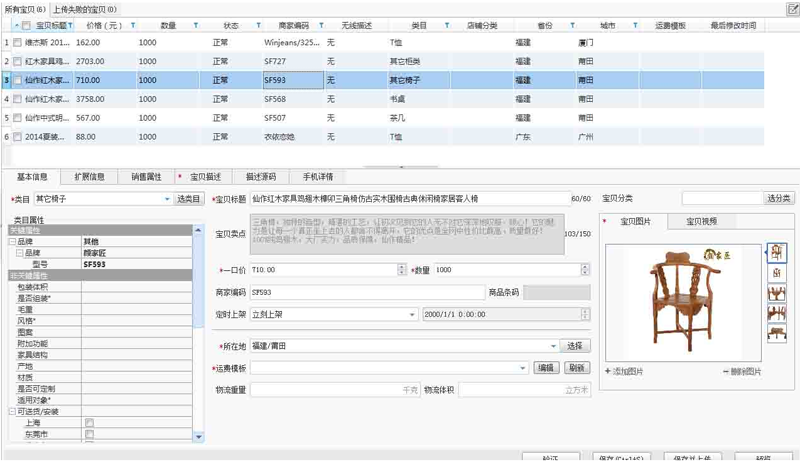 3、导入后,非关键属性、宝贝数量等重新根据自己的情况设置好,就可以保存上传啦。