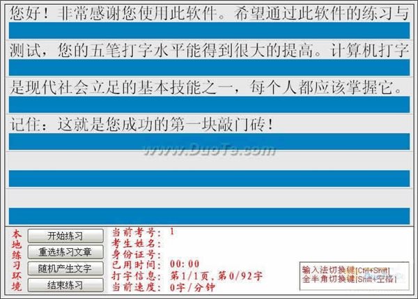 1、增加了联网练习的功能,客户机可向考试服务器申请联网练习,每次的练习成绩均能保存,有利于从考试服务器上调阅各考生练习一段时间后的进步情况。联网练习时可由电脑自动产生练习文字或管理员指定文件夹下随机选择文本文件。
