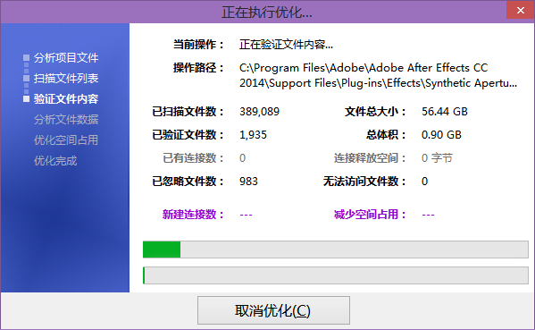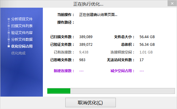 点击“执行优化”,会弹出一个确认,点击确定后开始处理。