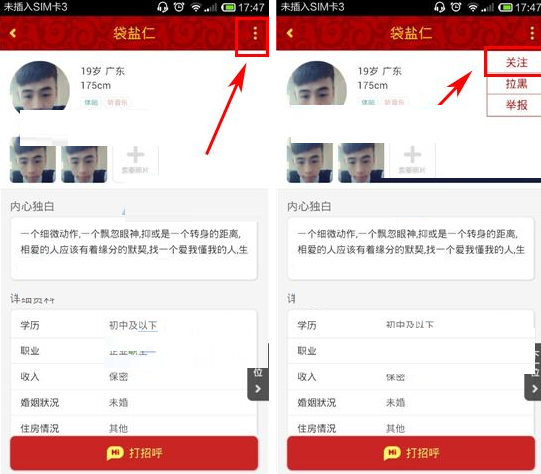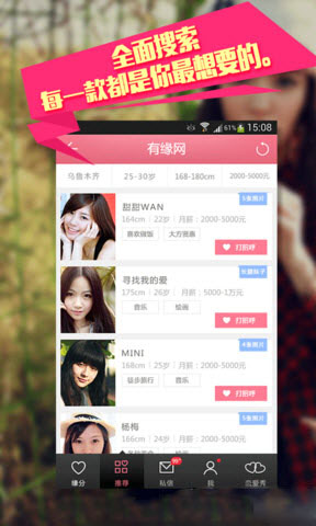 2.【精准匹配】—根据你的每一次“喜欢”,每一次“打招呼”,每一次“查看”记录你的喜好,更精确的推荐符合你要求的异性,我们比你更懂你!