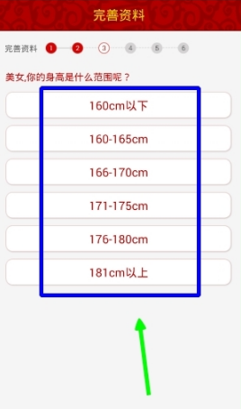 在“完善资料”页面中填写好自己的资料(包括用户名字、身高、工作等信息);