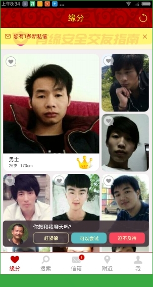 注册完账号后进入到应用主页,开始你的缘分之旅吧!