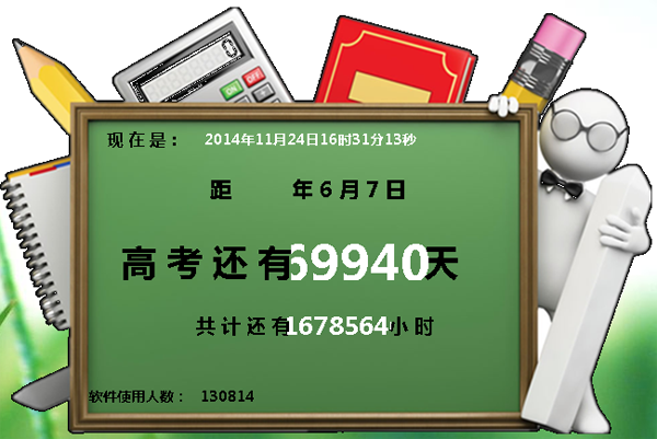 古月高考倒计时是一款计时和日程提醒的软件,在高三的莘莘学子们埋头苦读的时候,时间概念往往变得比较淡薄,而这款高考倒计时软件能在电脑桌面上时刻提醒你备战高考。