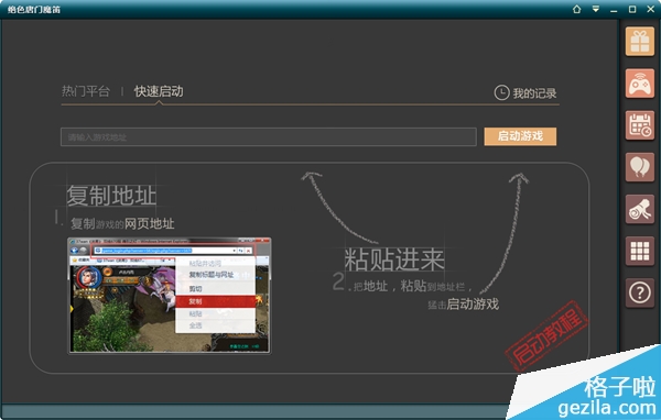 3.复制游戏网页地址到启动游戏栏中,再点击“启动游戏”按钮即可,即可启动游戏