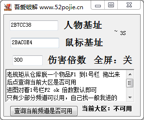 老规矩从仓库脱一个物品F1 到1号栏 拖出来后点查询当前大区是否可用进图对着1号栏F2 ok 倍数默认即可