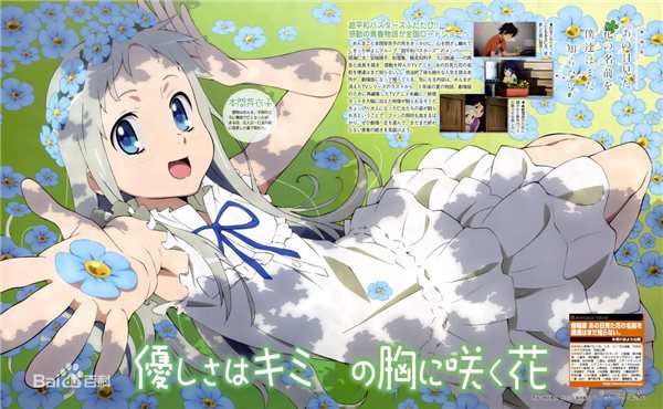畅销日漫《あの日見た花の名前を僕たちはまだ知らない》在大陆被译作“我们仍未知道那天所见的花的名字”,未闻花名则是该作的简称。本作是一部用直达内心的笔触描写青春期的少男少女在面对恋情、友情、纠葛时,有欢欣笑容也有伤心泪水的青春原创动画片。