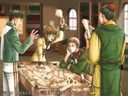 故事开始的地点是赤月帝国的帝都,格雷斯达。数年来帝国的政治日渐败坏,中饱私囊的官吏、山贼、湖贼横行于世。在此时势中主角之父帝国五将军之一的德敖带着主角朝谒见皇帝的大殿出发....以中国四大奇书之一的“水浒传”作为题材。每作游戏内可以有108位角色(宿星-以三十六天罡星七十二地煞星命名)作为同伴,但部分作品可以有超过108名角色加入,集合全部角色是非常困难的。
