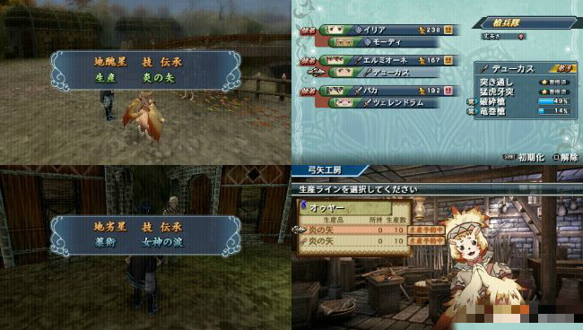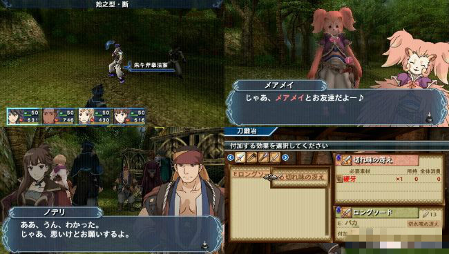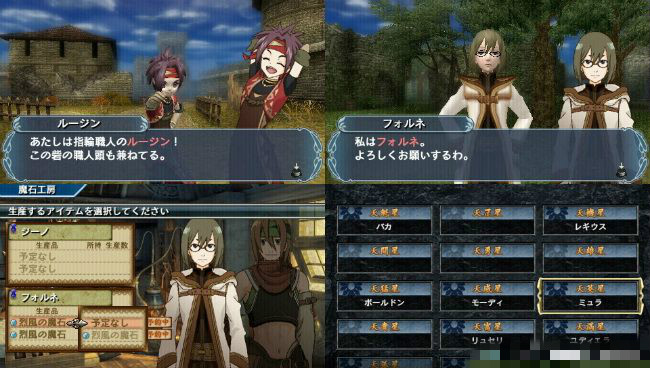 然后在地图溜达下主角跟着一起捣蛋挖出一箱子东西,然后眼镜娘加入仲间.回到据点可以生产风魔石了,