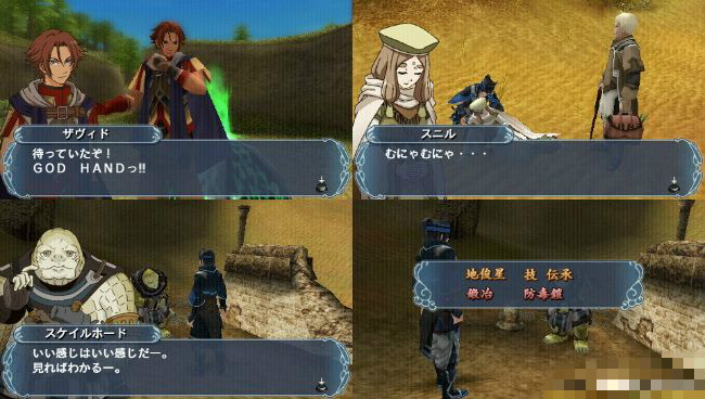 主角领军的据点。据点会随着角色的增加而变化。除了有锻冶屋和防具屋之外,还有浴场等等。而据点的发展亦会引发增加同伴的事件。