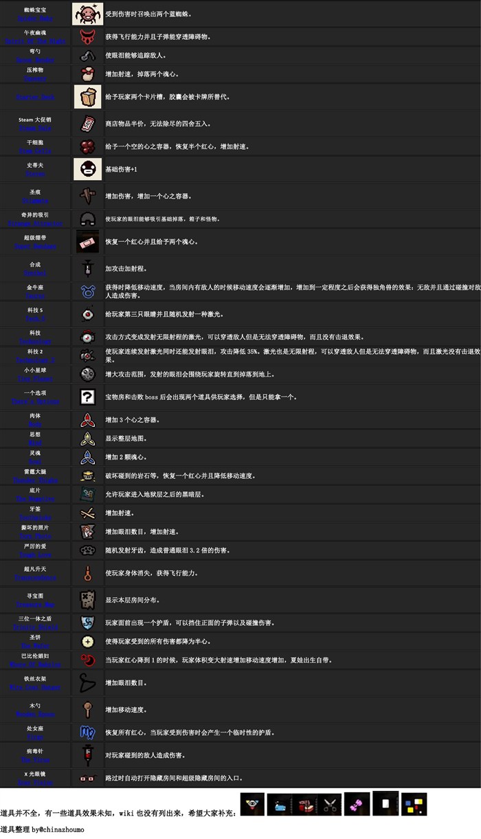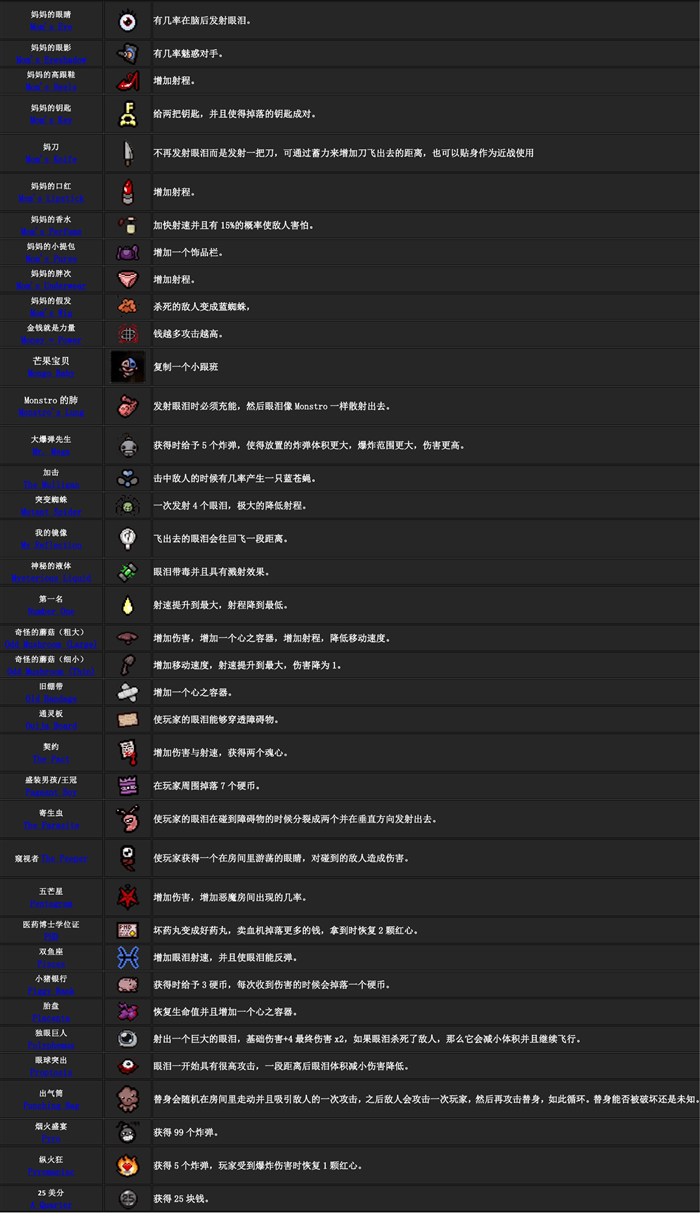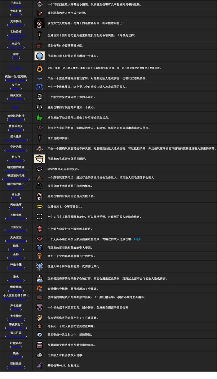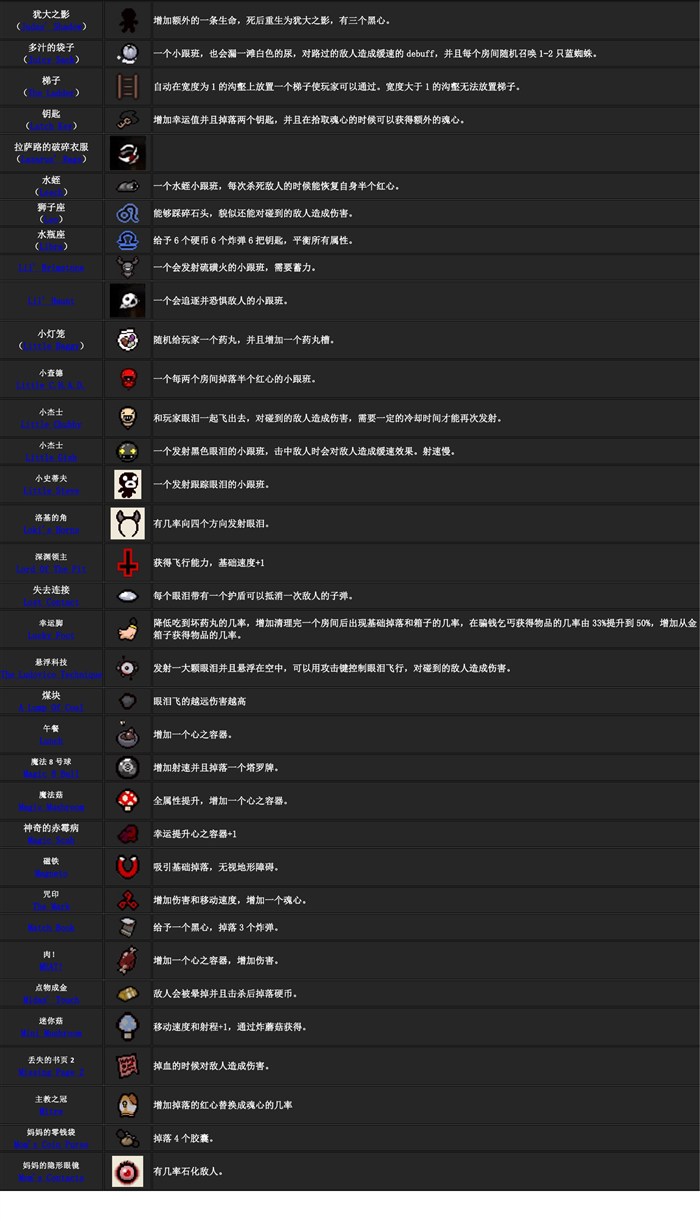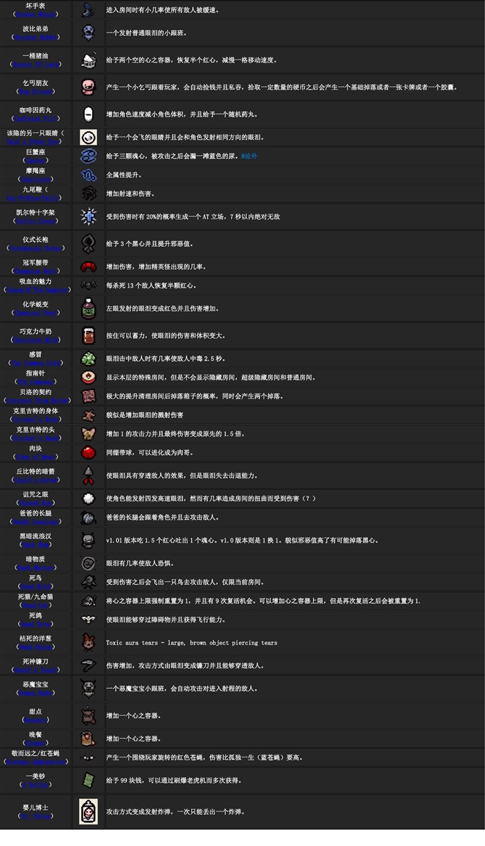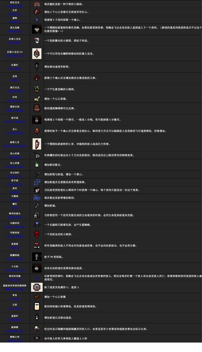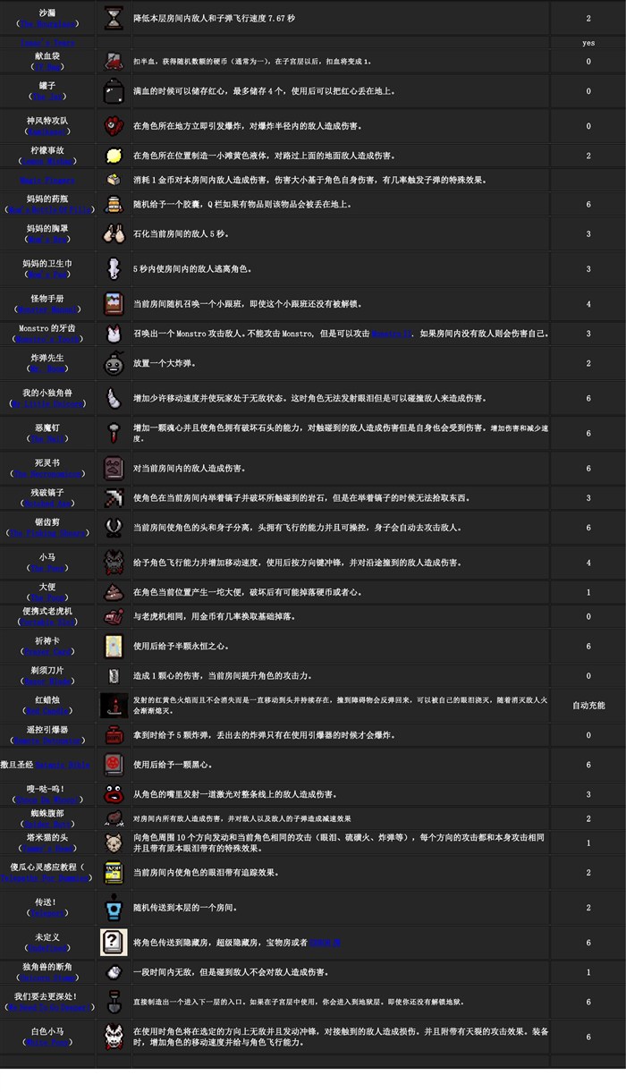 以撒的结合重生是以撒的结合系列游戏的综合加强版,在原作的基础上加入了更多主动被动道具、符文、药片等增加战斗力的物品,刚刚入手这款游戏的玩家们在体验时难免会遇到不认识道具作用的问题,这种情况下只要你下载以撒的结合重生图鉴,其中包含了游戏中所有的道具、符文、卡牌的功能说明,让你不再为选择道具而烦恼。